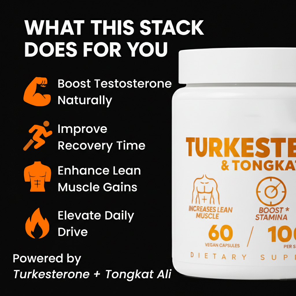 Turkesterone is a plant-derived compound that may support muscle growth, while Tongkat Ali is a natural herb traditionally used to promote energy, vitality, and hormonal balance. Together, they form a plant-based performance stack.